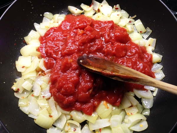 - If you’re using a can of diced tomatoes, blend them along with their juice for a few seconds in the food processor or blender, just to break them up.